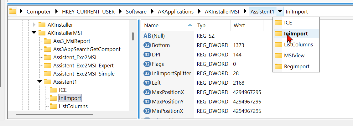 Wie auf der Dateien-Seite, können Sie hier Registry-Werte und Schlüssel direkt aus der Registry-Ansicht in Ihre Projekt ziehen.