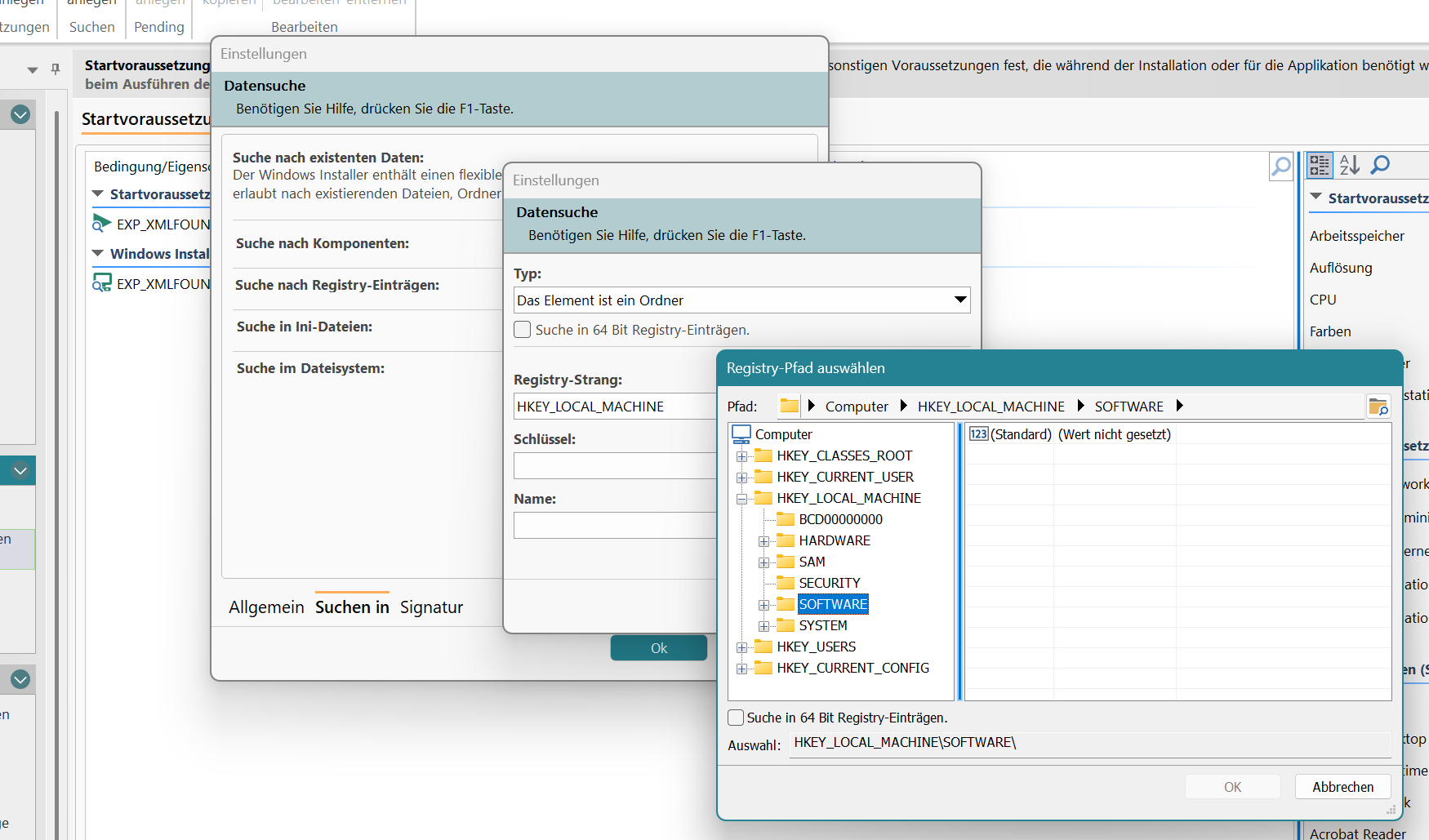Die Seite Startvoraussetzungen ermöglicht es Ihnen, nach installierten Produkten, Dateien, Ordnern oder Registry-